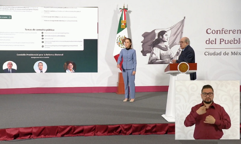 Pablo Gómez Álvarez, titular de la Comisión Presidencial para la Reforma Electoral, informó que ya están en marcha las audiencias públicas y foros de consulta en todo el país, con el objetivo de construir de manera abierta y participativa la iniciativa de reforma electoral, las cuales tienen como temas 10 ejes de consulta, que son: