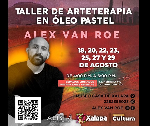 Este lunes, a las 16:00 horas, en el Museo Casa de Xalapa (Muxa), se desarrollará el taller de Arteterapia en óleo pastel impartido por Alex Van Roe.