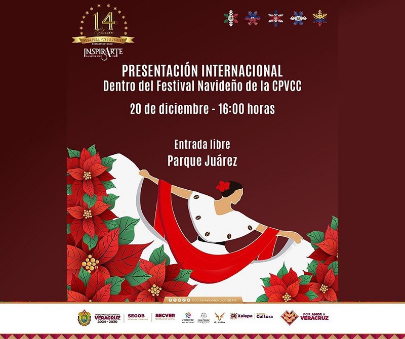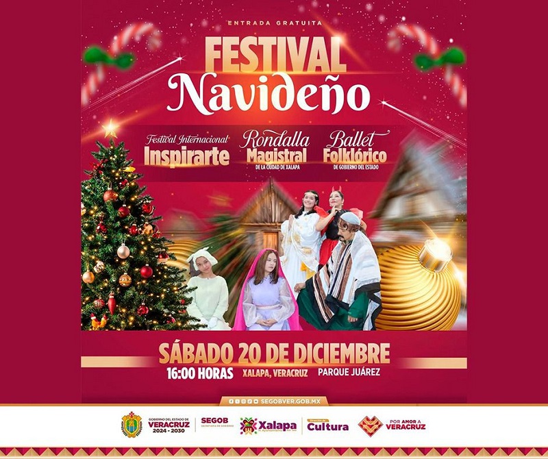 Más tarde, en el Parque Juárez, iniciará un Festival Navideño con la participación de la Rondalla Magistral de Xalapa y el Ballet Folklórico del Gobierno del Estado de Veracruz.