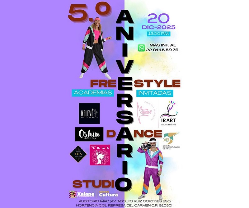 El sábado 20, desde las 12:00 horas, el auditorio de la IMAC será sede del quinto aniversario de Freestyle Dance Studio, con la participación de diversas compañías; a la misma hora, en el Teatro J. J. Herrera, Smooth House presentará su Recital Navideño.