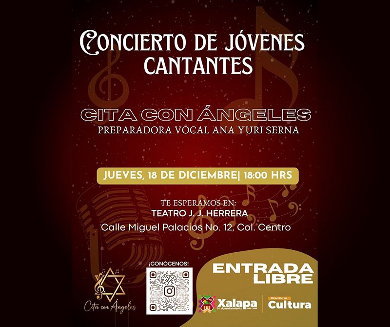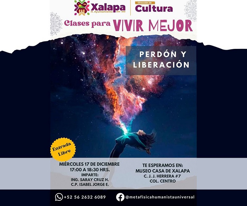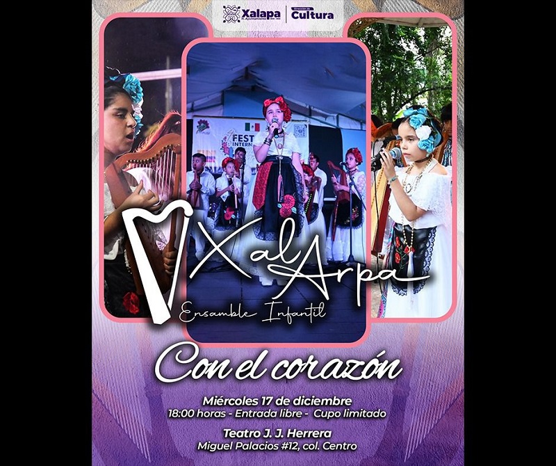 Este miércoles, a las 17:00 horas, en el Museo Casa de Xalapa (Muxa), se impartirá la charla “Perdón y liberación”. A las 18:00 horas, en el Teatro J. J. Herrera, se presentará el Ensamble Infantil XalArpa con el concierto “Con el corazón”; mientras que en el Museo de la Música Veracruzana, se ofrecerá un concierto de Guitarra Clásica, a cargo de Fernando Nicolás y Johana O. Ramírez.