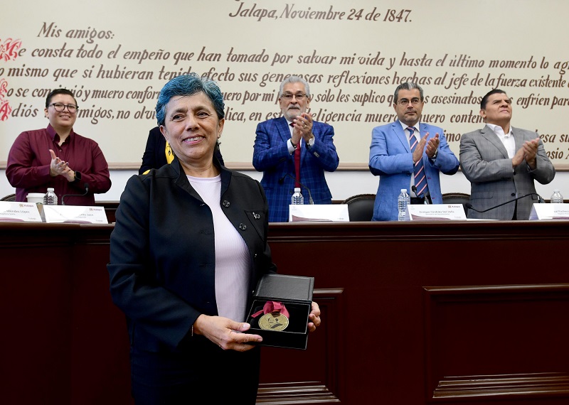 Xalapa, Ver.- Gladys Villegas Morales es un referente de la cultura xalapeña cuyo legado comprende una trayectoria de más de 30 años en la lucha feminista, la docencia y el arte, afirmó el alcalde Alberto Islas Reyes, durante Sesión Solemne de Cabildo en la que se entregó la Medalla al Mérito Artístico “Juan Herrera Vázquez, ‘Juanote’”, a la doctora en Bellas Artes.