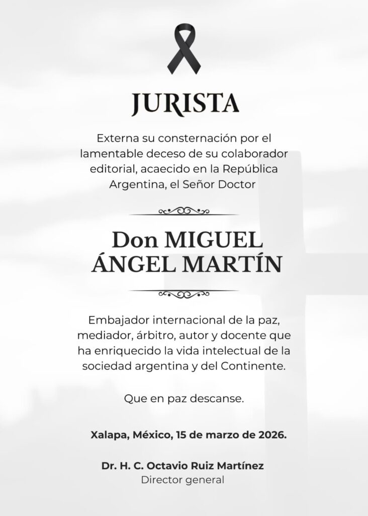 La comunidad jurídica interamericana ha perdido a uno de sus miembros distinguidos, el doctor Miguel Ángel Martín, quien fuera presidente del Instituto Argentino de Negociación, Conciliación y Arbitraje (IANCA), y autor de una vasta producción que incluye la autoría de más de 142 libros y más de 54 mil 550 artículos.