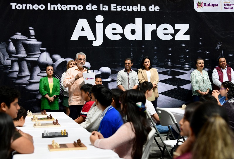 Xalapa, Ver.- Con apoyo de la Dirección de Desarrollo Social, esta Administración contribuye a la formación integral de la niñez y la juventud para tener una mejor sociedad, afirmó el alcalde Alberto Islas Reyes, al inaugurar el Torneo Interno de la Escuela de Ajedrez del Ayuntamiento, el cual se realizó en el patio central de Palacio Municipal.