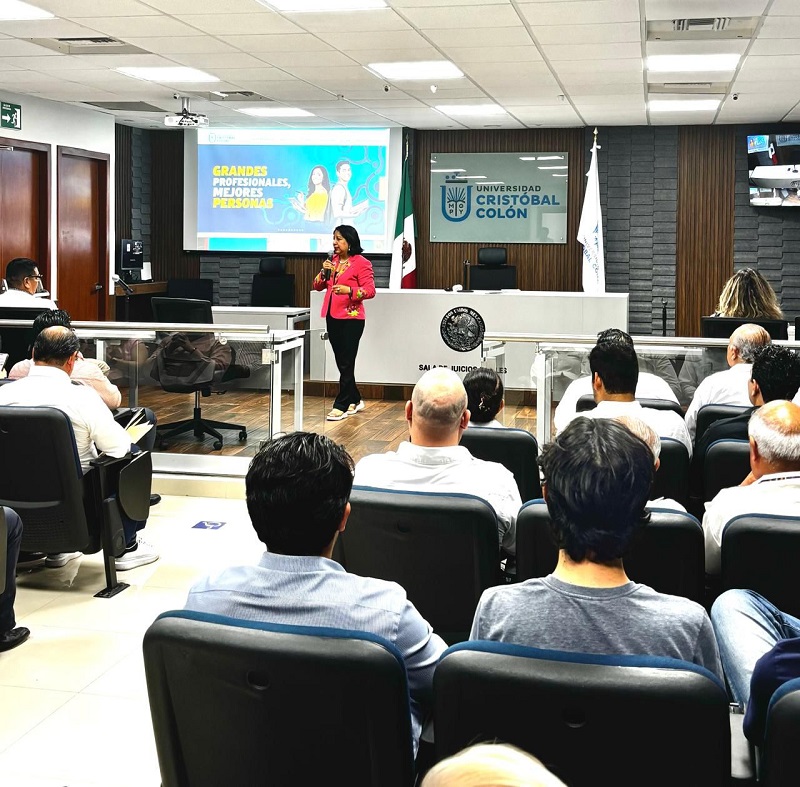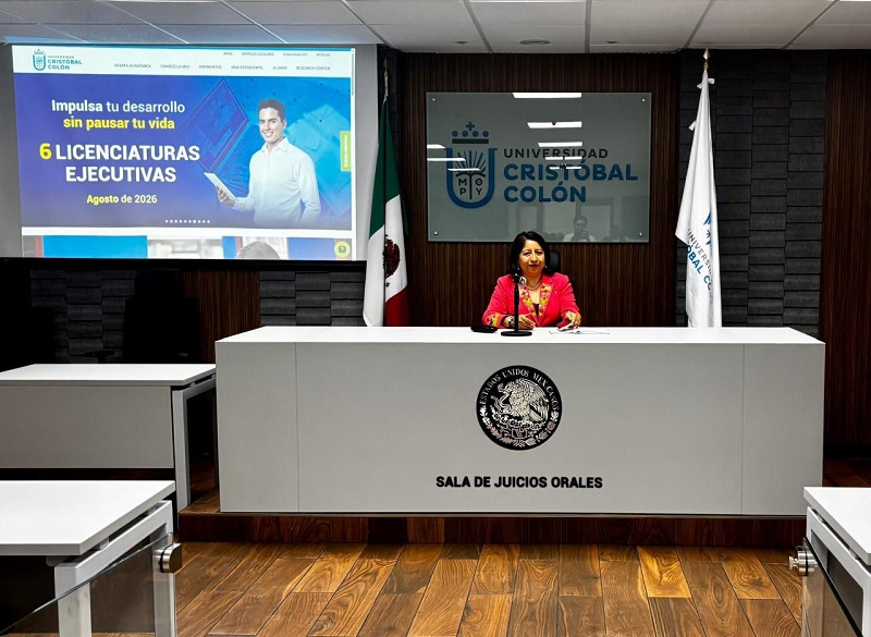 Veracruz, Veracruz, a 12 de marzo de 2026.–  La Magistrada Presidenta del Tribunal Superior de Justicia del Estado de Veracruz, Dra. Rosalba Hernández Hernández, impartió la conferencia “El nuevo modelo de justicia en México”, en la Universidad Cristóbal Colón, como parte de la inauguración de la nueva Sala de Juicios Orales de esta institución educativa.