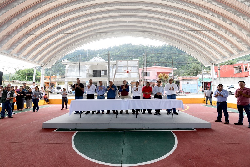 Posteriormente, el Alcalde inauguró el domo ubicado en la explanada central de la congregación, obra realizada con una inversión superior a un millón y medio de pesos, destinada al disfrute de las y los estudiantes, así como de todas las familias que habitan en la localidad.