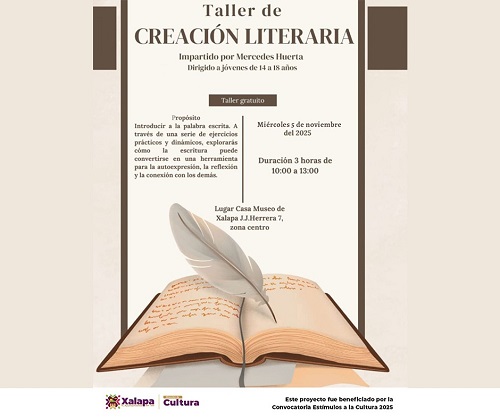 El miércoles, a las 10:00 horas, en el Muxa, continuará el taller de Creación Literaria de Mercedes Huerta, para jóvenes de entre 14 y 18 años. A las 17:00 horas, en el mismo espacio, se tendrá la charla “El poder de la visualización”.