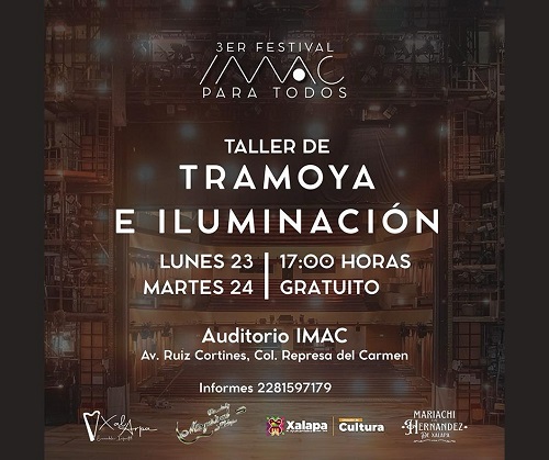 Este lunes, en el Museo Casa de Xalapa (Muxa), a las 16:00 horas, se impartirá el Taller de Arteterapia en óleo pastel de Alex Van Roe. Una hora más tarde, en el auditorio de la IMAC, iniciará el Tercer Festival “IMAC para todos”, con el taller “Tramoya e iluminación”.