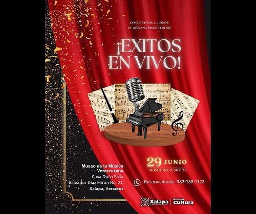 El viernes, en el Museo de la Música Veracruzana, a las 17:00 horas, se ofrecerá el concierto “La magia del piano”, con alumnos del Centro de Iniciación Musical Infantil, media hora más tarde, en el Parque Juárez, se desarrollará “Viernes en vivo itinerante”, una noche de música con Conchita Garfias, Enya Hermosillo y Ramsés Ojeda.