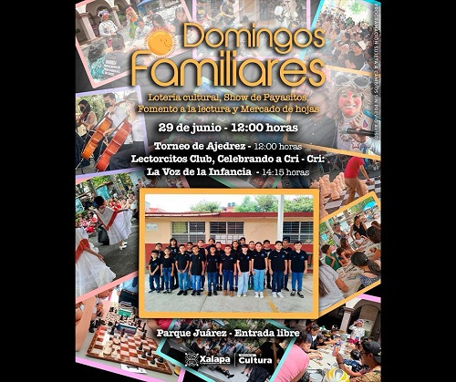 El sábado, en el Muxa, se tendrá la “Revisión fotográfica punto de fuga”, que imparte el Colectivo Tomar la Calle, a las 13:00 horas. A las 17:30 horas en el Museo de la Música Veracruzana se impartirá la conferencia “Estadio Xalapeño”. A las 18:00 horas, en el Parque Juárez, el grupo Vintage ofrecerá “Arte pop del siglo XIX”.