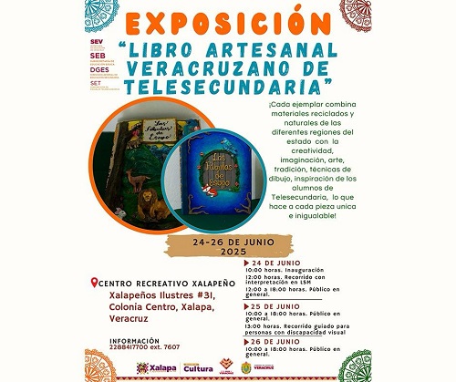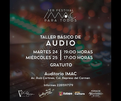 El martes a las 10:00 horas, en el CRX se inaugurará la exposición “Libro artesanal veracruzano de telesecundaria”. A las 19:00 horas continuará el Festival “IMAC para todos”, con el Taller básico de audio, actividad que se repetirá el miércoles a las 17:00 horas.
