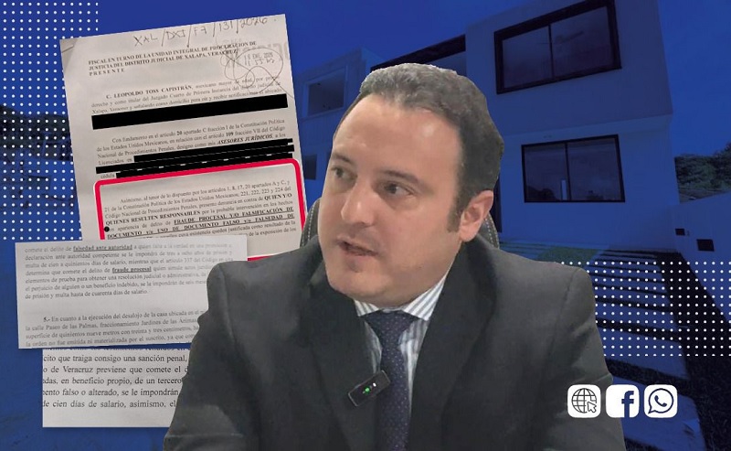El juez Leopoldo Toss Capistrán presentó una denuncia ante la Unidad Integral de Procuración de Justicia del Distrito Judicial de Xalapa, con el objetivo de que se investigue la probable comisión de los delitos de fraude procesal, uso de documentos falsos, falsedad de declaraciones y falsificación de documentos, derivados de un caso por el cual ha sido señalado públicamente como presunto integrante del llamado “cártel inmobiliario”.