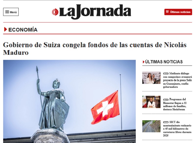 Ciudad de México. El gobierno de Suiza anunció que las instituciones bancarias del país bloquearon de manera inmediata los fondos correspondientes a cuentas vinculadas a Nicolás Maduro y a personas de su entorno, por un periodo inicial de cuatro años.