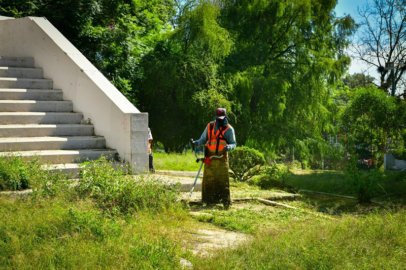 Como parte de las acciones, se trabajó en el mantenimiento de la glorieta Miguel Alemán, de la colonia Ferrocarrilera, así como en el área verde de Narváez, en la colonia Revolución.