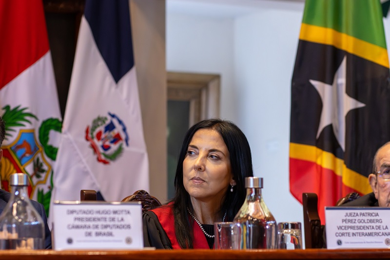 - Quisiera saludar también a la vicepresidenta de la Corte, la jueza Patricia Pérez Goldberg. Estoy seguro, jueza Pérez Goldberg, de que su amplia experiencia profesional y su compromiso con los derechos humanos serán muy valiosos en el bienio que inicia y de que caminaremos juntos, en nuestros mandatos, por la devoción a esta Corte y por la inspiración común de su noble misión continental protectora de las víctimas.