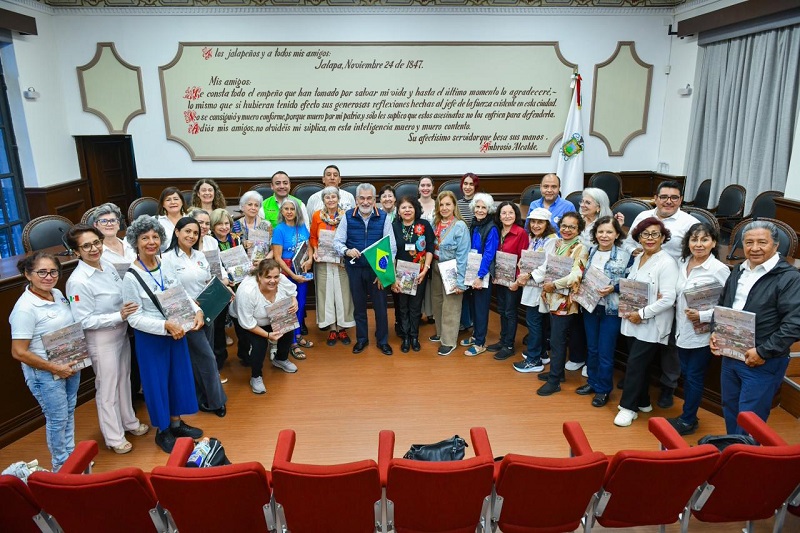 Como muestra de hospitalidad, el Alcalde obsequió a las y los integrantes del grupo un ejemplar del libro “Xalapa Antigua”, publicación que rescata parte del patrimonio histórico y visual de la ciudad.