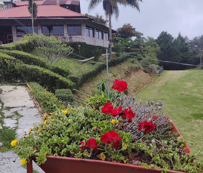 Su arquitectura tipo cabaña, con techo a cuatro aguas y raso de madera, crea un ambiente cálido y acogedor. Además, cuenta con grandes ventanales que permiten la entrada de luz natural y una excelente ventilación, favorecida por el aire puro del bosque y los jardines floridos que lo rodean.