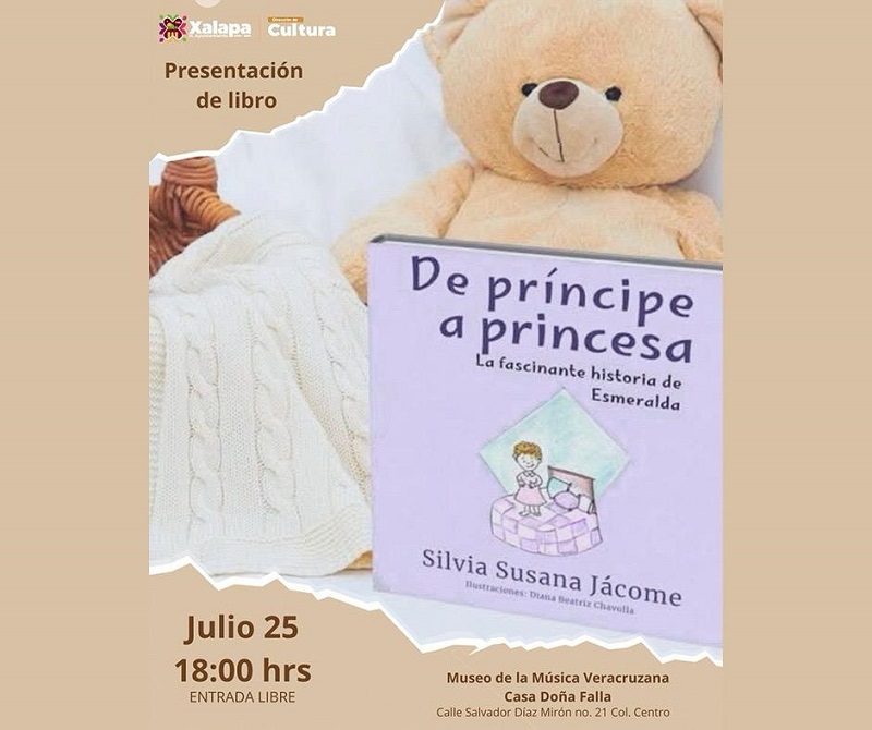 El viernes, a las 18:00 horas, en el Museo de la Música Veracruzana se presentará el libro “De Príncipe a Princesa, la fascinante historia de Esmeralda”, de Silvia Susana Jácome.
