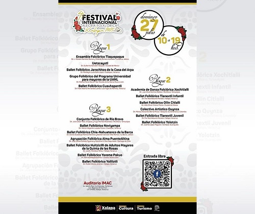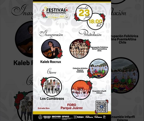 A las 19:00 horas, en Xallitic, el Festival Internacional “Alegría Folklórica 2025” presentará una gala con agrupaciones folclóricas locales e internacionales.
