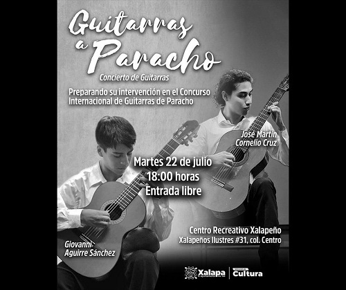 Este martes, a las 18:00 horas, el Centro Recreativo Xalapeño (CRX) será sede del concierto Guitarras a Paracho, con la participación de jóvenes talentos rumbo al concurso internacional de guitarras de Paracho.