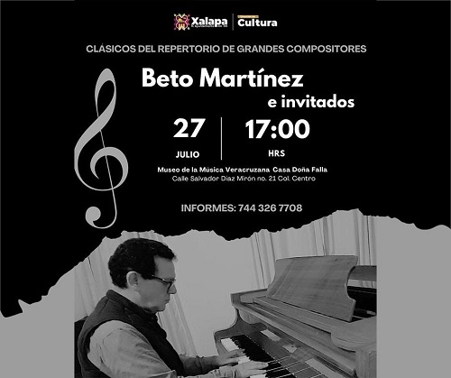 Finalmente, a las 17:00 horas, habrá dos eventos simultáneos: en el Museo de la Música Veracruzana se interpretará un repertorio de grandes compositores con Beto Martínez e invitados; y en el Parque Juárez se celebrará una nueva edición de “Danzón pa’l Corazón”.