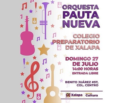 A las 14:00 horas, en el Colegio Preparatorio de Xalapa, se presentará la Orquesta Pauta Nueva.