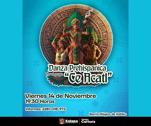 El viernes, a las 19:30 horas, en el Barrio Mágico de Xallitic, se presentará la danza prehispánica del grupo “Ce Acatl”. El sábado, en el Museo de la Música Veracruzana, se presentará el proyecto Kairos.