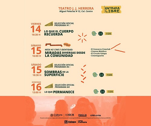 En la plaza Manuel Maples Arce se realizará el Festival de Cortometrajes Veracruzanos, a las 20:00 horas. El domingo, en el CRX, continúan las Terapias Complementarias.